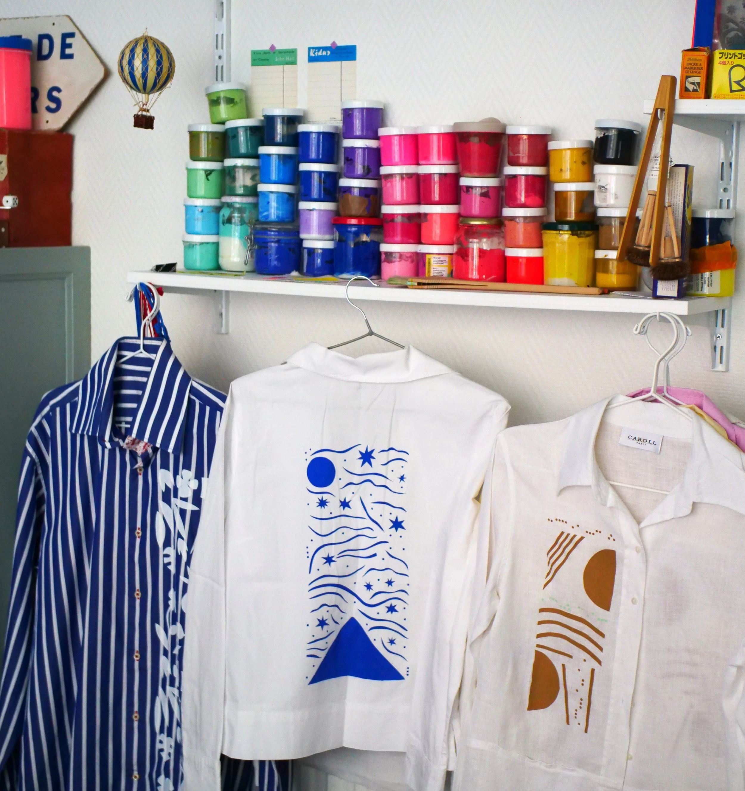 La transmission de la mémoire artisanale et de techniques d’impression textile anciennes ont une importance cruciale dans le travail de l’atelier pour les faire perdurer et en chercher de nouvelles applications. Proposer des techniques peu connues lors d’ateliers artistiques est un formidable outil de médiation et d’échanges avec le public. Explorer de nouveaux usages de l’impression textile permet également contourner la production de masse pour revenir à un travail plus raisonné du textile et de créer des produits ou des œuvres uniques.